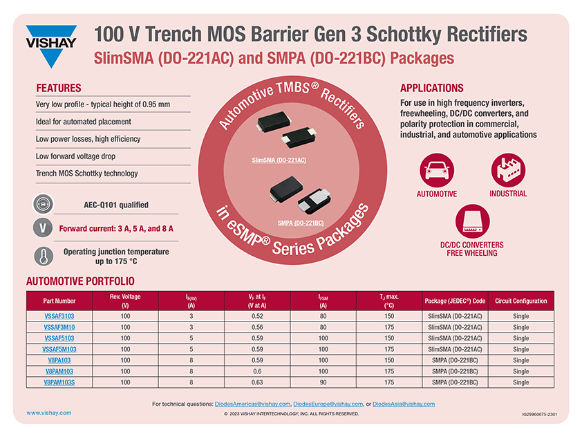 100伏沟槽MOS屏障第三代肖特基整流器