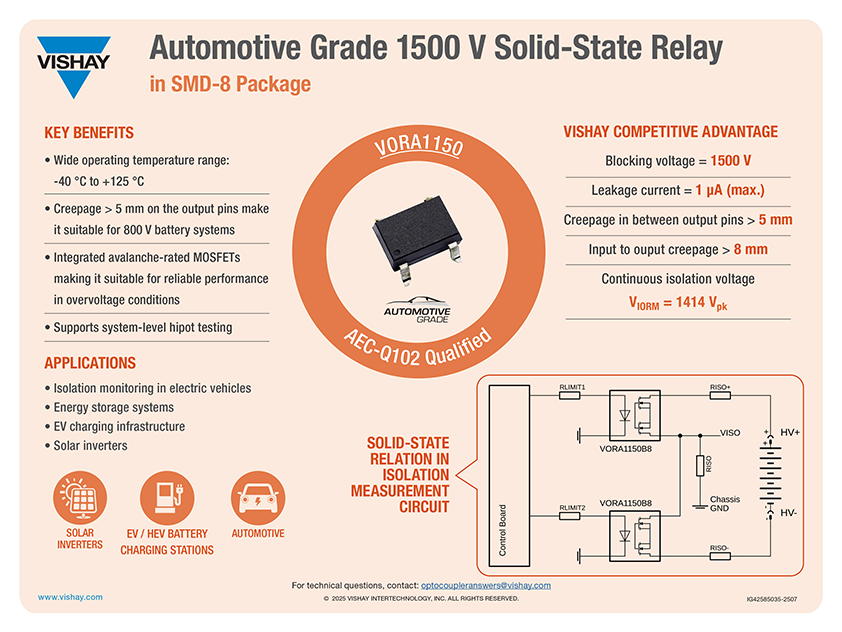 汽车级1500伏固态继电器
